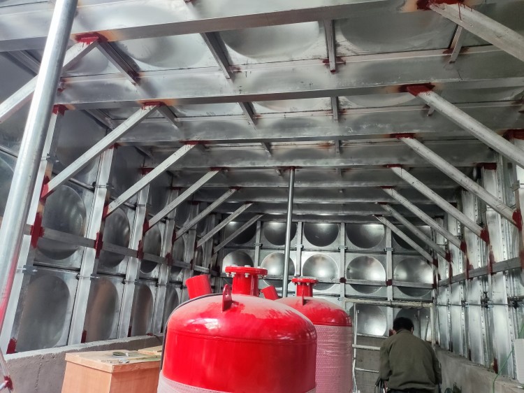 SMC水箱組裝就是用模壓的小塊,到施工現場組裝成大的水箱。外面要用角鋼進行固定的,角鋼搭出個水箱模型,在上面鋪玻璃鋼平板,拼縫處再現場多糊幾層方格布...